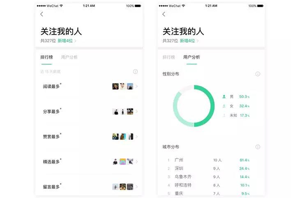 1. 及時查看新關注用戶的信息,或通過排行榜了解最關心你的用戶。