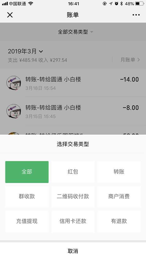 支付寶的賬單功能相信很多的人都使用過,其實(shí)微信也有這個(gè)功能,若想要查詢自己的微信賬單,首先打開微信支付,下方功能就有賬單查詢,還可以選擇交易類型,這個(gè)月剁手了多少錢,一目了然。