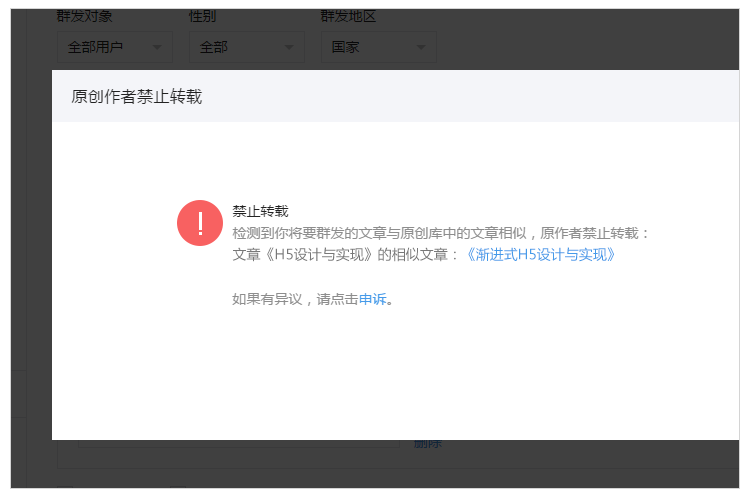 3. 設(shè)置為禁止轉(zhuǎn)載的文章,所有公眾號(hào)無(wú)法轉(zhuǎn)載。