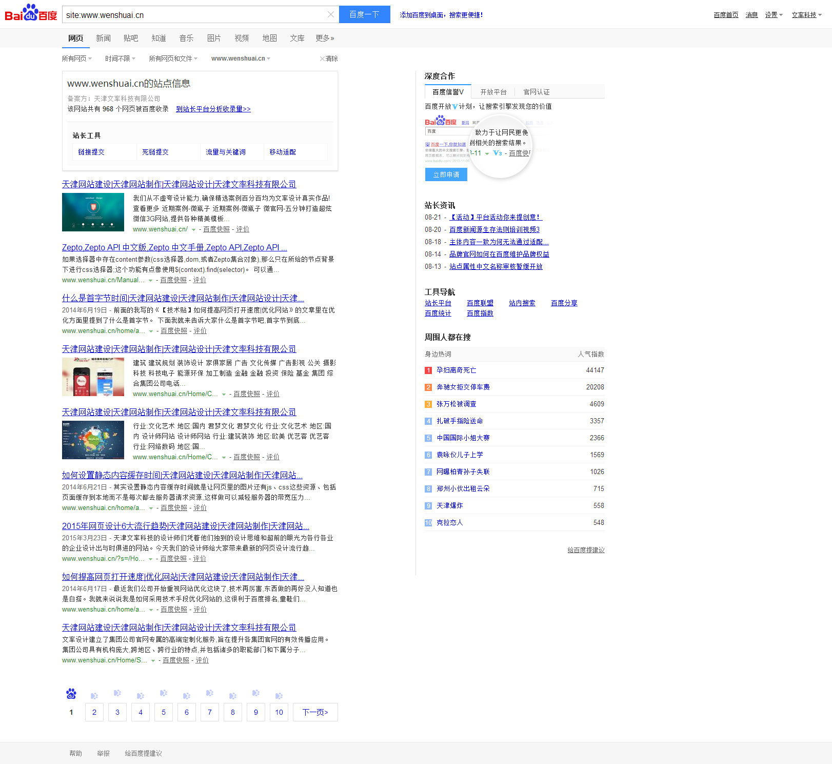 觀察對(duì)方網(wǎng)站的收錄情況:我們可以打開(kāi)百度的頁(yè)面輸入site查看對(duì)方網(wǎng)站的收錄情況,若是對(duì)方網(wǎng)站的收錄與自己網(wǎng)站的收錄之間的差距不是太多,或者是對(duì)方的收錄比自己多,那么我們都是可以與之交換友情鏈接。如:查看天津網(wǎng)站建設(shè)-文率科技的收錄情況,在百度的頁(yè)面我們應(yīng)輸入site:m.nfmori.cn,如圖: