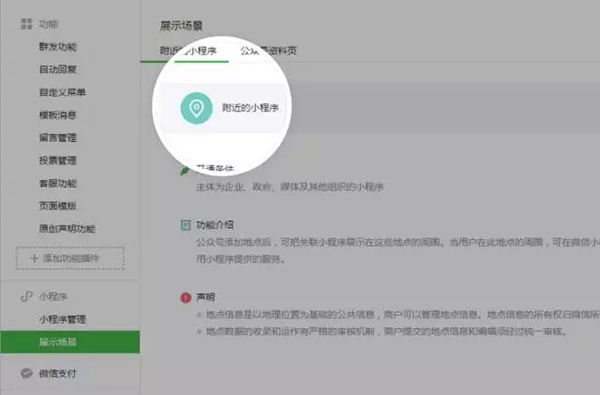 一、小程序使用公眾號(hào)的地點(diǎn)展示在“附近”