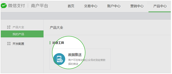 1. 登錄商戶平臺,在【產(chǎn)品中心-我的產(chǎn)品-數(shù)據(jù)推送】點擊“申請開通”