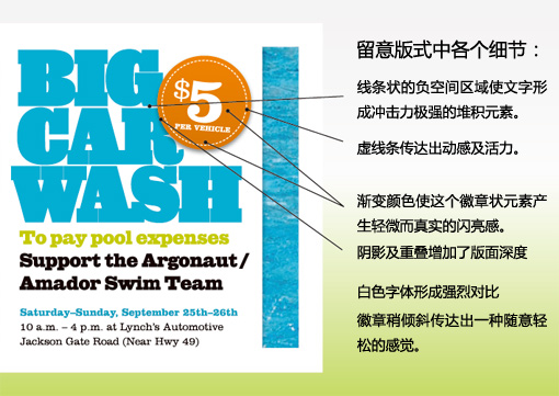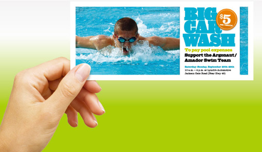 沒有人會對它視而不見:這張洗車券是一般門票尺寸的兩倍之大,設計起來也很容易,從視覺上也非常能吸引有興趣的消費者。大圖片及大標題使這張洗車券產生一張海報的視覺效果,效果當然不錯。