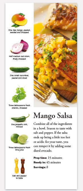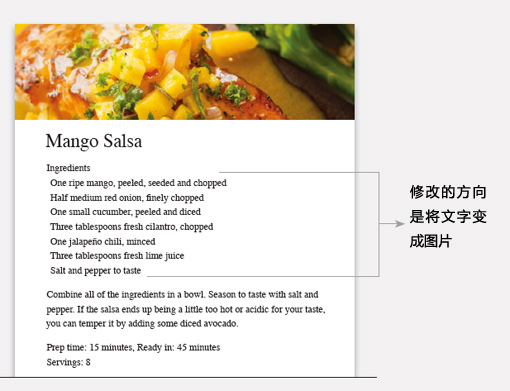 你如何設計一張與烹飪配方相關的宣傳卡片?不要將那些用料簡單地用文字列出,顯示它們!這個方式適用于任何指引性的設計項目。