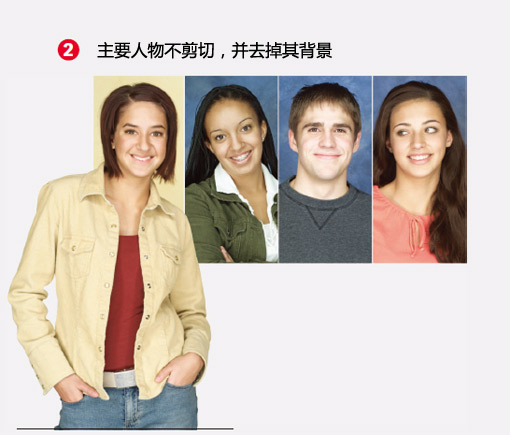 一旦定下各人的尺寸后,最重要的⑴個人物不要剪切,但去掉其身后的背景。