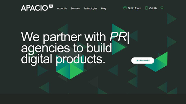 好的設(shè)計(jì)就應(yīng)該緊隨時(shí)代的發(fā)展,這樣才能具有富有時(shí)代感的體驗(yàn),背景紋理設(shè)計(jì)同樣如此。當(dāng)下,最流行的設(shè)計(jì)元素之一就是幾何圖形元素,將幾何圖形融入到背景當(dāng)中,毫無疑問非常具有吸引力,如:Apacio這個(gè)網(wǎng)站,它采用深色的背景之上混合色彩鮮艷的幾何圖案,創(chuàng)建出富有深度且抓人眼球的視覺,而文字方面采用了簡(jiǎn)約的非襯線體,使得它們可以從黑色和綠色的背景中脫穎而出。