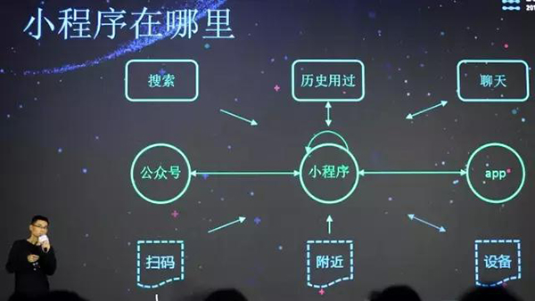 據(jù)林興介紹,小程序經(jīng)過(guò)了一年多的發(fā)展,在微信中已經(jīng)擴(kuò)展到了50多個(gè)入口,這些入口分成三大類,線上的發(fā)現(xiàn)入口,線下的連接入口,以及服務(wù)與服務(wù)之間的入口。