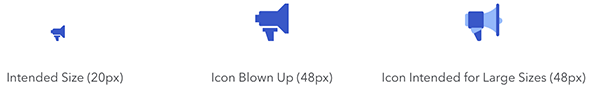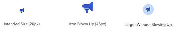 不過(guò),若這些小圖標(biāo)是你唯一能夠搞得到的素材的話,那么不妨試著將它置于另外一個(gè)帶有顏色的圖形當(dāng)中:這樣的設(shè)計(jì)不僅能夠讓圖標(biāo)達(dá)到預(yù)期的視覺(jué)體積,而且看起來(lái)要比單純放大,看起來(lái)細(xì)節(jié)會(huì)更多一些。