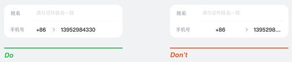 輸入域的長(zhǎng)度與預(yù)期輸入的內(nèi)容成正比,確保輸入字段長(zhǎng)度符合用戶心理預(yù)期,并能夠在表單中完整呈現(xiàn)。
