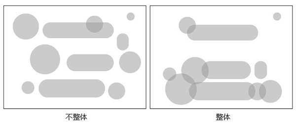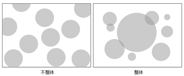 有些設(shè)計(jì)師在做設(shè)計(jì)時(shí)喜歡將所有空白都填上元素,這種做法不僅會(huì)造成畫面擁擠不透氣,還會(huì)使畫面看起來(lái)很散。若版面中元素東一個(gè)西一個(gè),像一盤散沙一樣,那就回顯得非常的不整體,由于畫面的視覺不集中,各元素之間也就很難關(guān)聯(lián)中起來(lái)。所以,一定要各個(gè)移動(dòng)元素集中排放,除此之外,還可以在元素之間增加一個(gè)元素將它們貫穿起來(lái)。