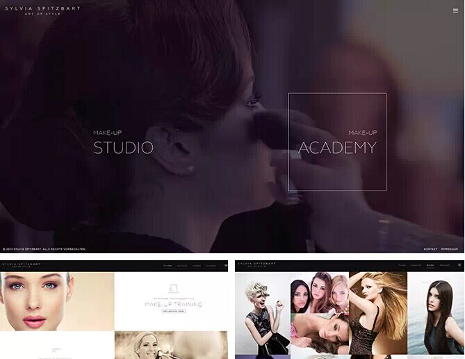 例如:“sylviaspitzbart”化妝工作室,利用纖細(xì)線框,將內(nèi)容很好的分割,頁面簡潔而大方又不失品質(zhì)。