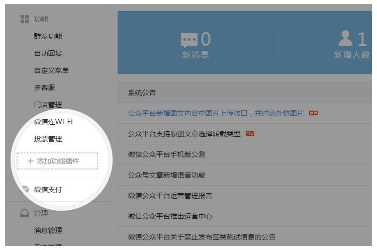 1. 運(yùn)營(yíng)者在功能欄目下,點(diǎn)擊添加功能插件。