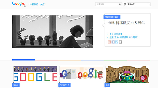 發(fā)布著Google在一些紀念日所設(shè)計的特殊logo的網(wǎng)站??梢钥吹?/span>Google的“歷代節(jié)日logo”。Google公司內(nèi)部叫它“Doodles”,英語指的是“亂涂亂畫”。很厲害喲。