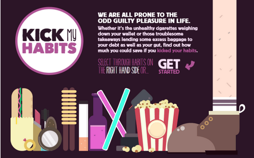 Kick My Habits給人的⑴樣就是厚厚的粗體“Kick My Habits”,瘦瘦的字體(叫做KG How Many Times)以其迷人的手寫風格。與其他粗體形成對比,這個設計漂亮圖文并茂的網(wǎng)站是用一種輕松、非正式的方式來測試你在壞習慣上浪費了多少錢,且這個網(wǎng)站也不會占用很多網(wǎng)絡帶寬。