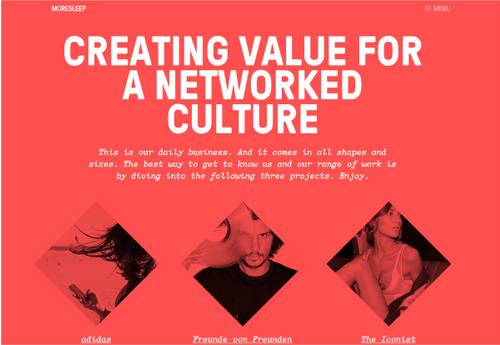 More Sleep網(wǎng)站不僅給人一種簡潔明亮的感覺,同時還會讓人覺得非常的友好,僅從網(wǎng)站的大字號以及略顯圓潤的邊角就有一種友好的感覺,這也是小編⑴次瀏覽該網(wǎng)站時的體會,打字機風格的字體用于描述和解釋,有著一種圓潤,柔軟,溫馨的情調(diào)。