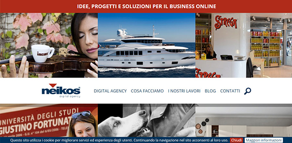 Neikos 是一個(gè)早在1998年就已經(jīng)存在的數(shù)字設(shè)計(jì)機(jī)構(gòu),它為客戶(hù)提供在線(xiàn)營(yíng)銷(xiāo)的解決方案和服務(wù),網(wǎng)站的布局也是基于案例展示的目的和柵格布局來(lái)設(shè)計(jì)的,紅色是他們的品牌識(shí)別色,在網(wǎng)頁(yè)配色方案中也是最主要的色調(diào)。