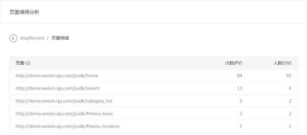 3. 各個 JSSDK 調用的頁面明細。