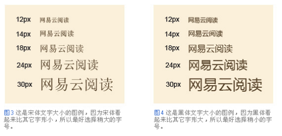 如圖:即便文字的大小是一樣的,由于字體不同,視覺上看起來字的大小也是有區(qū)別的,而且選擇文字的時候,需要考慮整體頁面的美觀度,可讀性。