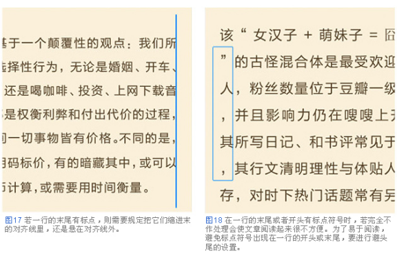 如:中文和英文混排,為使中文和英文和諧自然地結(jié)合,需要把英文的字號設(shè)定得比中文字號大一些。還有左右對齊,必須決定是否把標點“懸吊”在對齊線之內(nèi)。