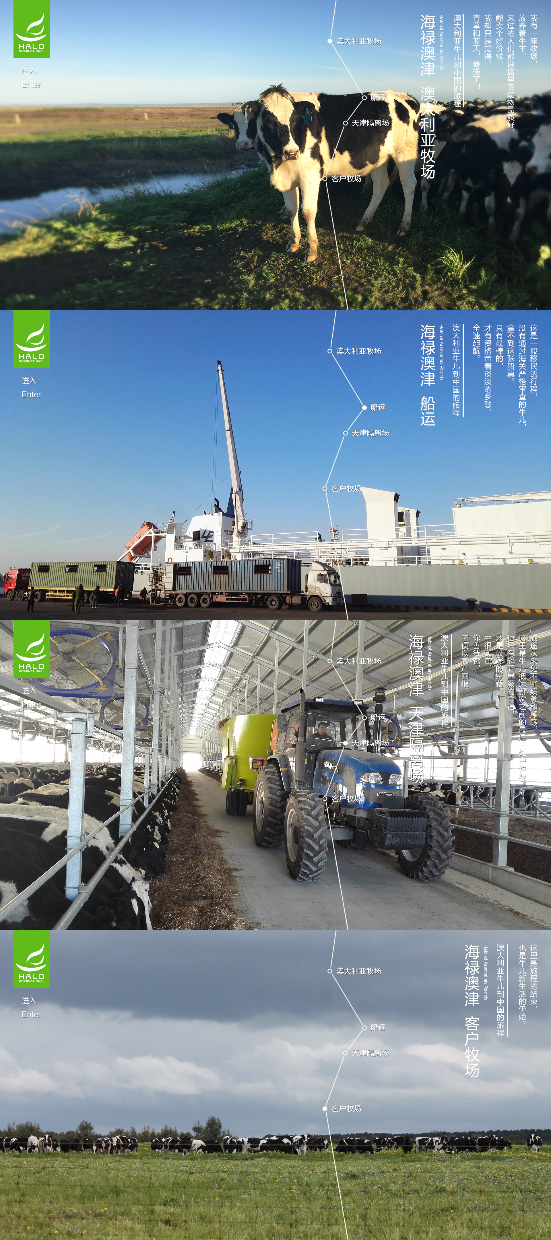 Halo owns a Quarantine station in Tianjin with a capacity of 3000 and a professional dairy farm located in Victoria, Australia.