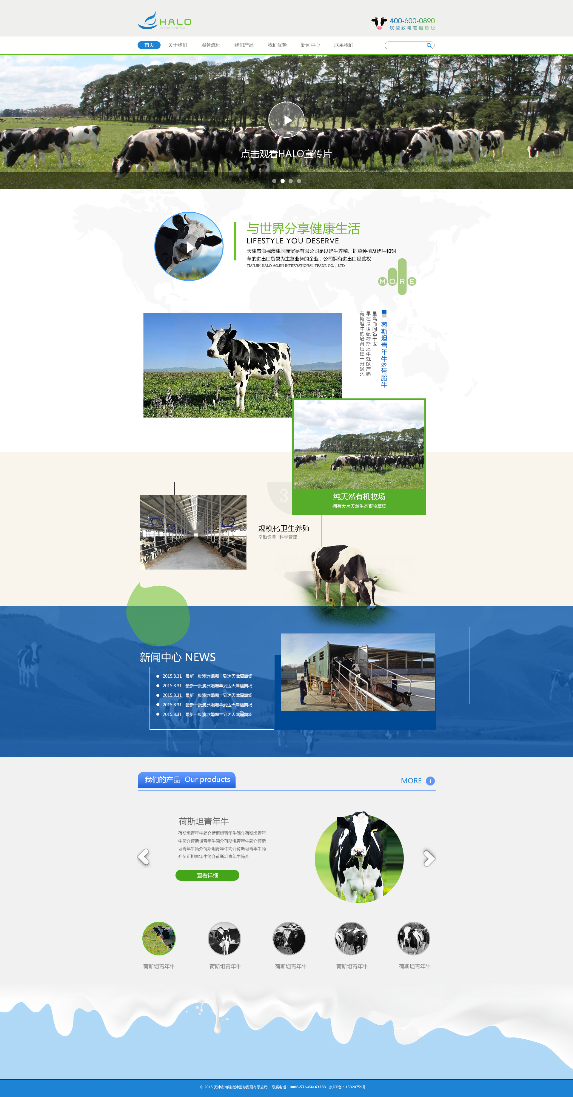 天津市海祿澳津國際貿(mào)易有限公司是以奶牛養(yǎng)殖、飼草種植及奶牛和飼草的進出口貿(mào)易為主營業(yè)務的企業(yè),公司擁有進出口經(jīng)營權(quán)。在天津市北辰區(qū)擁有一座占地123畝承載量3000頭的進口奶牛隔離場;在澳大利亞維多利亞州擁有專注奶牛放牧場。實現(xiàn)了從海外到海內(nèi)的全產(chǎn)業(yè)鏈自主把控,為國內(nèi)奶企提供品質(zhì)優(yōu)良、性價比更高的進口良種奶牛。