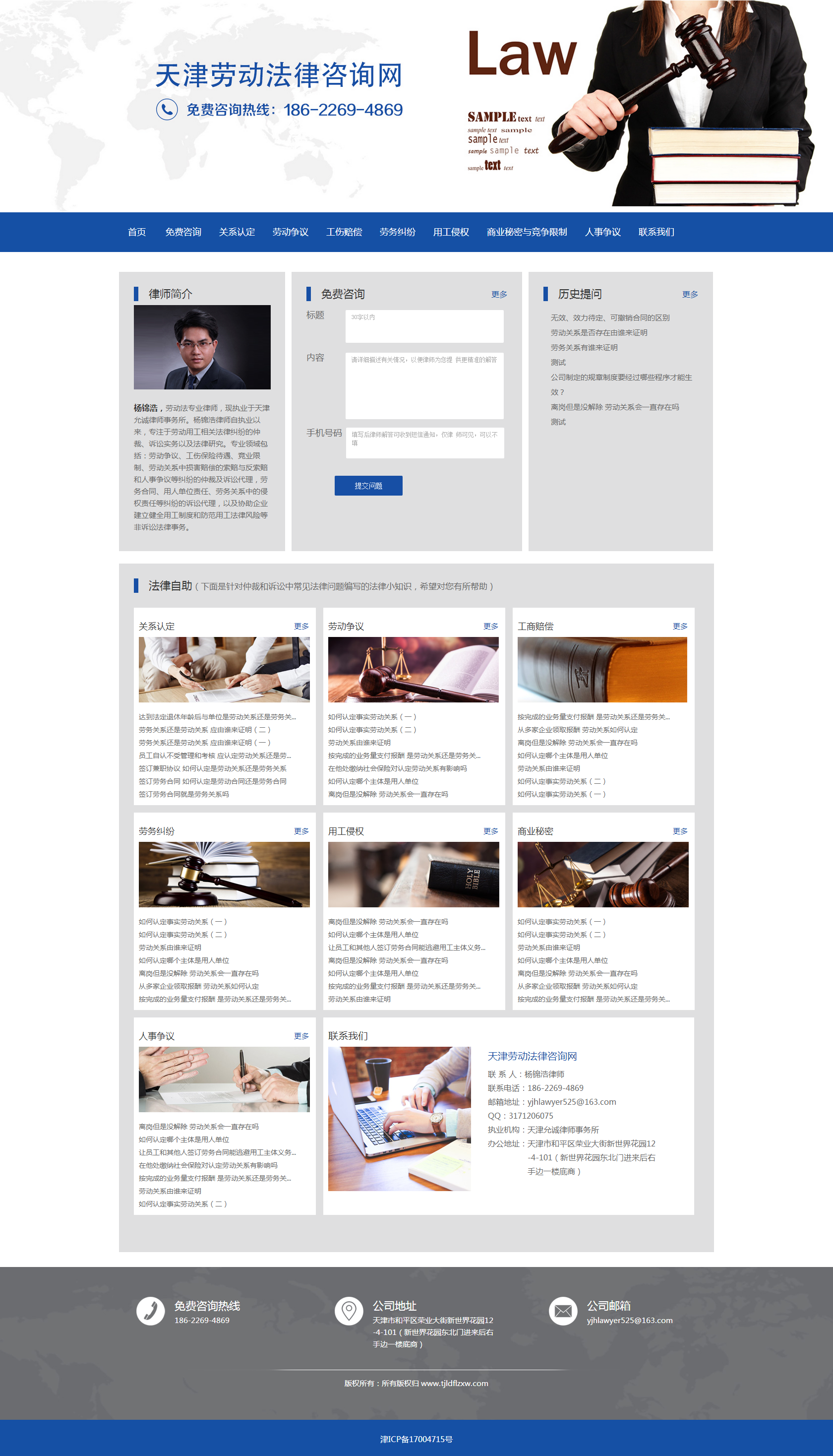 天津勞動(dòng)法律咨詢網(wǎng),是由楊錦浩律師創(chuàng)辦的區(qū)域性法律咨詢類網(wǎng)站,旨在為廣大網(wǎng)友提供勞動(dòng)和用工方面免費(fèi)的法律問題解答,以及分享與勞動(dòng)仲裁、訴訟相關(guān)的法律知識(shí)和仲裁、訴訟經(jīng)驗(yàn),使得廣大網(wǎng)友在自主進(jìn)行勞動(dòng)仲裁和訴訟活動(dòng)時(shí)獲得相應(yīng)的法律幫助。