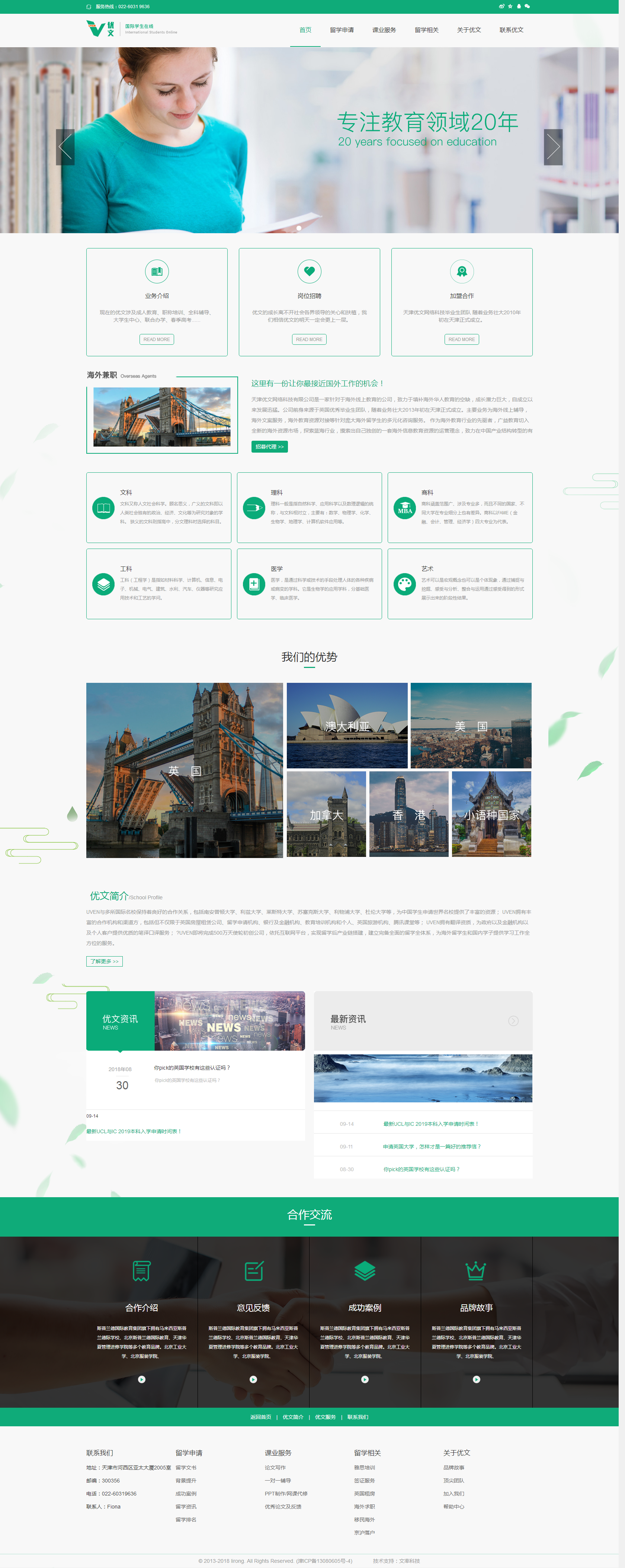 天津優(yōu)文網(wǎng)絡(luò)科技有限公司是一家針對于海外線上教育的公司,致力于填補海外華人教育的空缺,成長潛力巨大,自成立以來發(fā)展迅猛。公司前身來源于英國優(yōu)秀畢業(yè)生團隊,隨著業(yè)務(wù)壯大2013年初在天津正式成立。主要業(yè)務(wù)為海外線上輔導(dǎo),海外文案服務(wù),海外教育資源對接等針對龐大海外留學(xué)生的多元化咨詢服務(wù)。