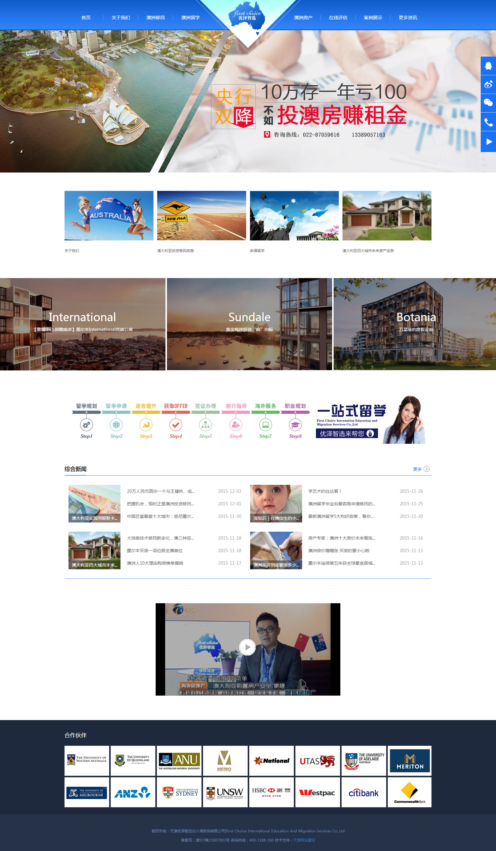天津優(yōu)澤智選出入境咨詢有限公司是天津市首家由澳籍華人主理的專注于澳洲不動(dòng)產(chǎn)、留學(xué)及移民規(guī)劃咨詢的專注服務(wù)機(jī)構(gòu)。公司始終秉持著“以客戶為本”的服務(wù)宗旨,不斷開拓創(chuàng)新更廣泛的服務(wù)領(lǐng)域。目前,優(yōu)澤智選已經(jīng)與海外60多家優(yōu)質(zhì)房地產(chǎn)開發(fā)商、39所大學(xué)以及眾多知名學(xué)院、高中建立了長期戰(zhàn)略聯(lián)盟,并與海外各大銀行、知名律師行建立了緊密合作關(guān)系。無論您是為了尋求完善的醫(yī)療服務(wù)、良好的子女教育和無憂的晚年生活,還是優(yōu)美的居住環(huán)境、便利的出境條件和廣闊的投資領(lǐng)域,我們均能滿足您的需求,為尊貴的您提供專注的海外房產(chǎn)、移民留學(xué)等一站式專注服務(wù),確保您“移路暢通”。